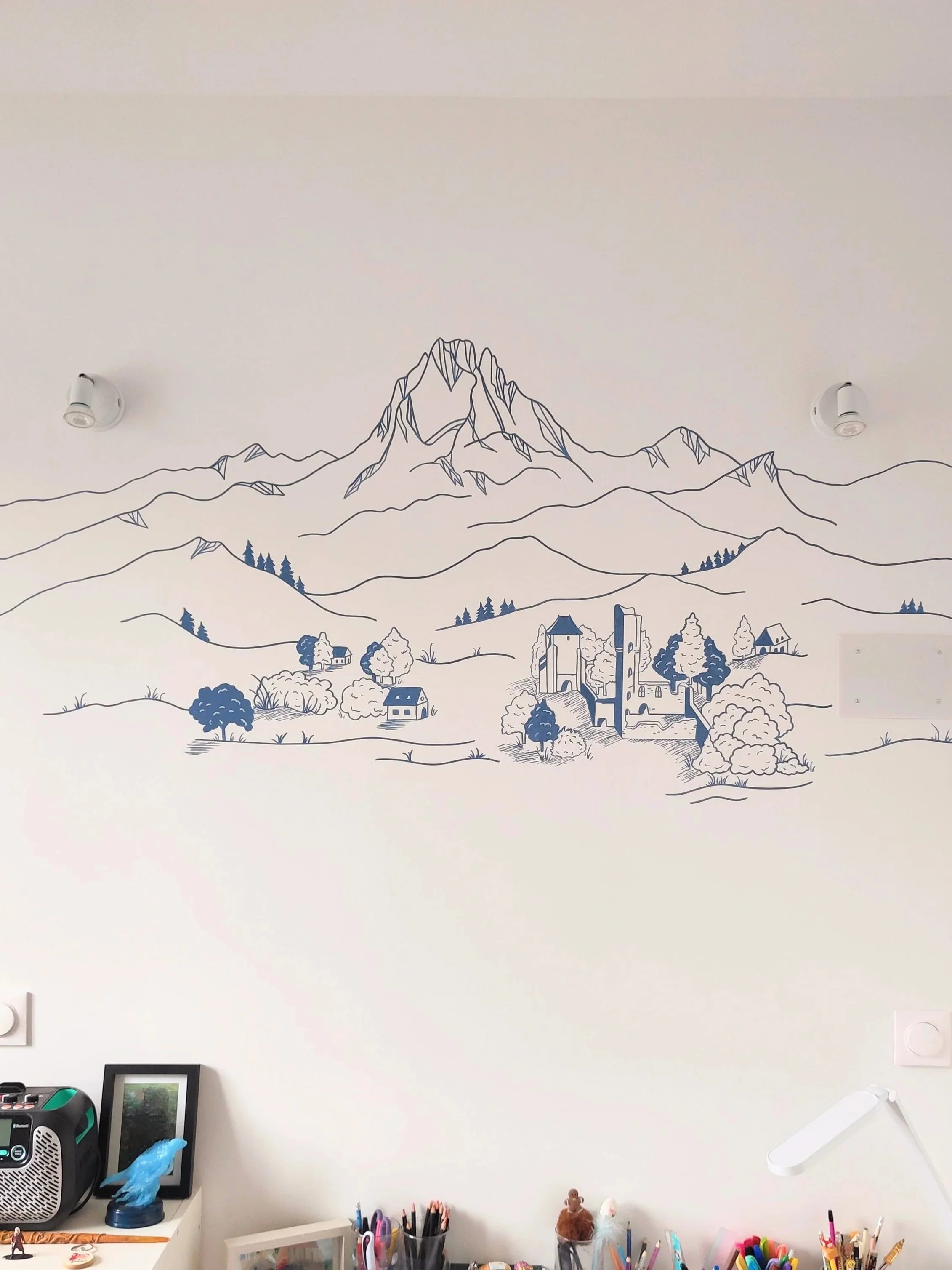 Mon univers s’inspire en premier lieu de la nature, fleurs, feuillages… Éternelle amoureuse des paysages à couper le souffle et particulièrement des montagnes qui sont pour moi une source d’évasion et d’inspiration permanente.. Chaque thème est évidemment le bienvenu car la plus grande force de la fresque murale sur mesure est de s’adapter à vos envies !